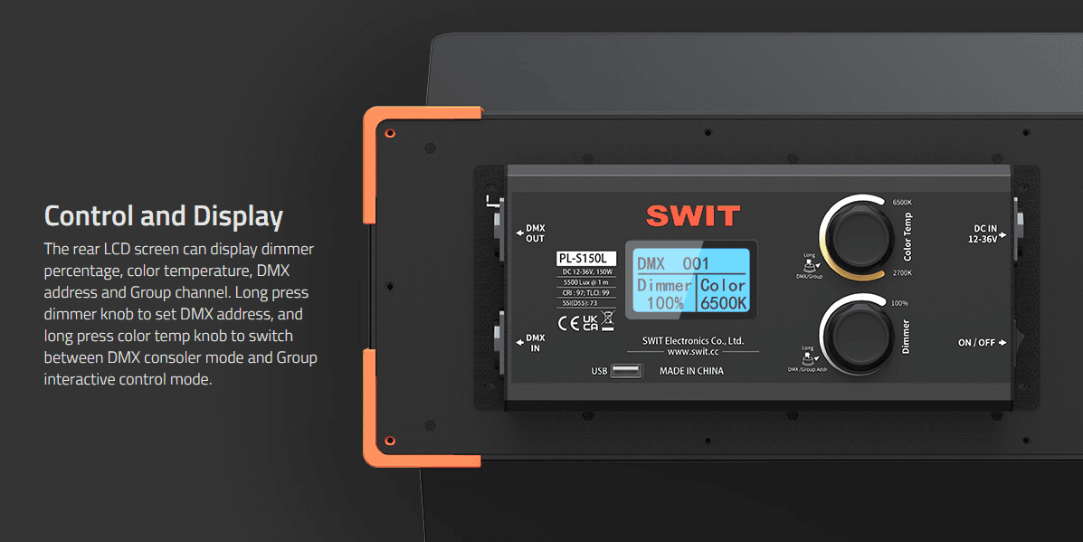 PL-S150L | 8:1 150W super-bright Soft Panel LED Light, 5500Lux, V-Mount, DMX, also ideal for 4K shooting, SWIT Free Design for Lighting Studios