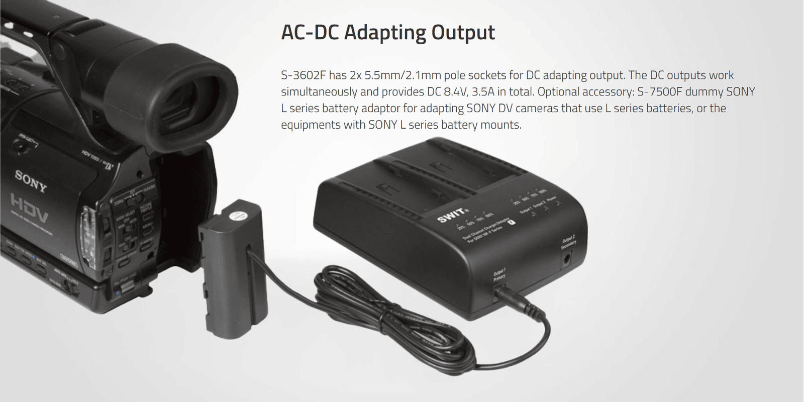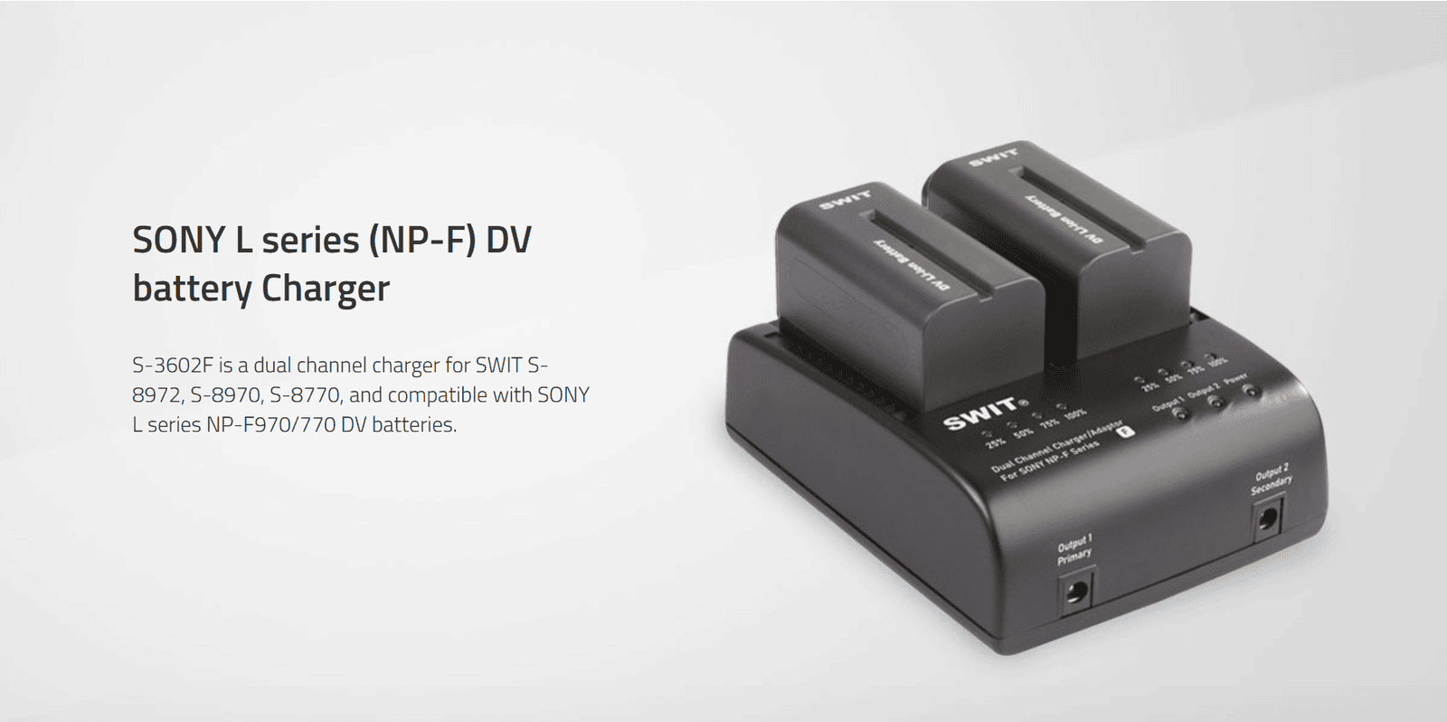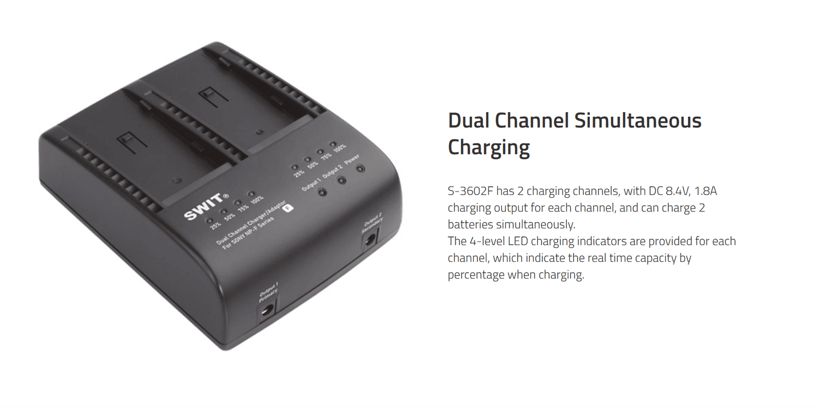 S-3602F| 2x2A DV charger compatible to Sony NP-F series