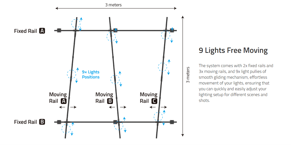 GA-CR3009 | 3x3m Studio Light Ceiling Rail System. ---~3 months LeadTime if no stock