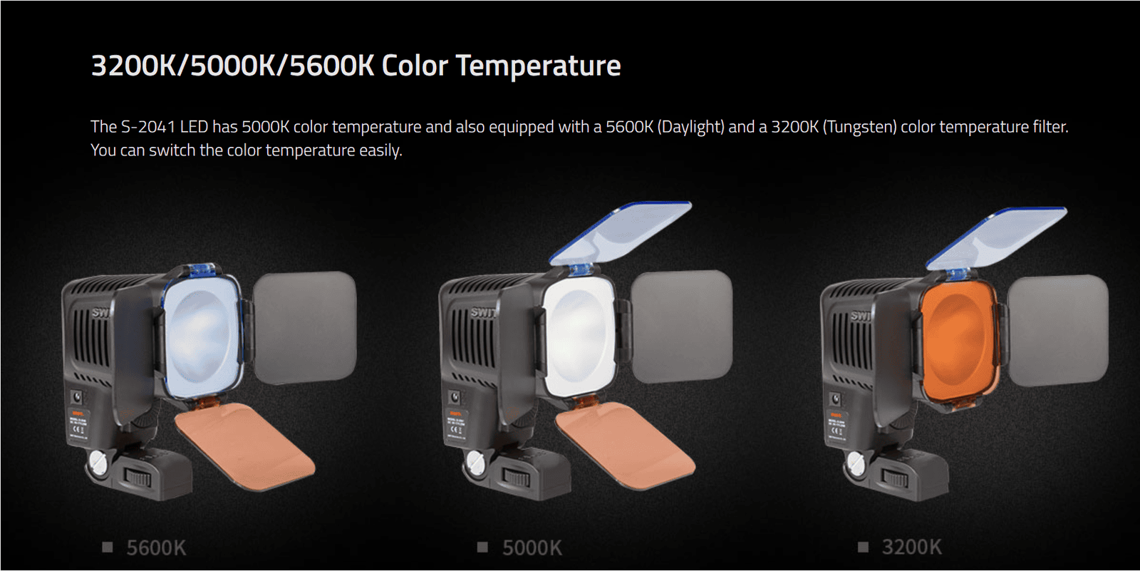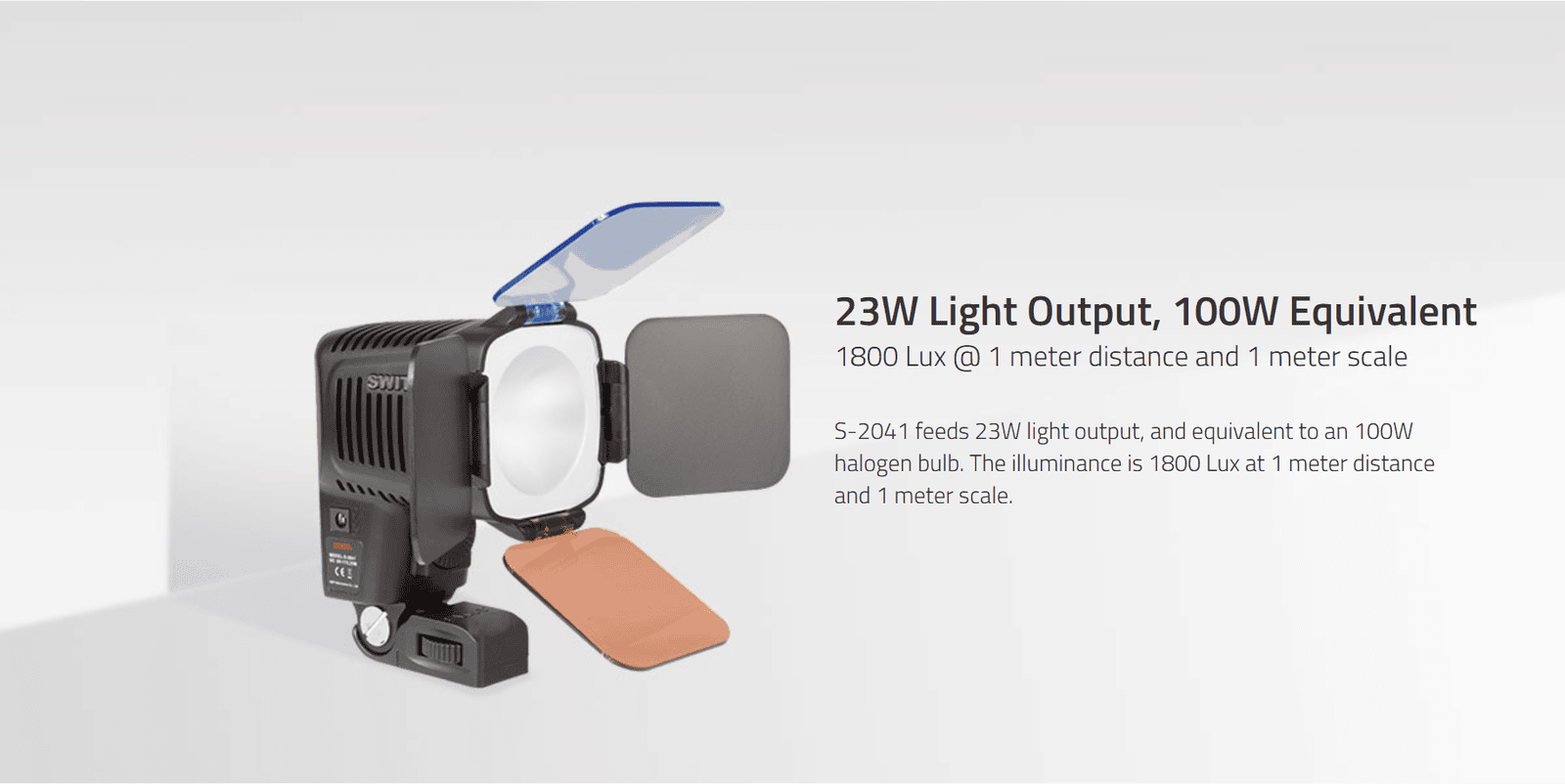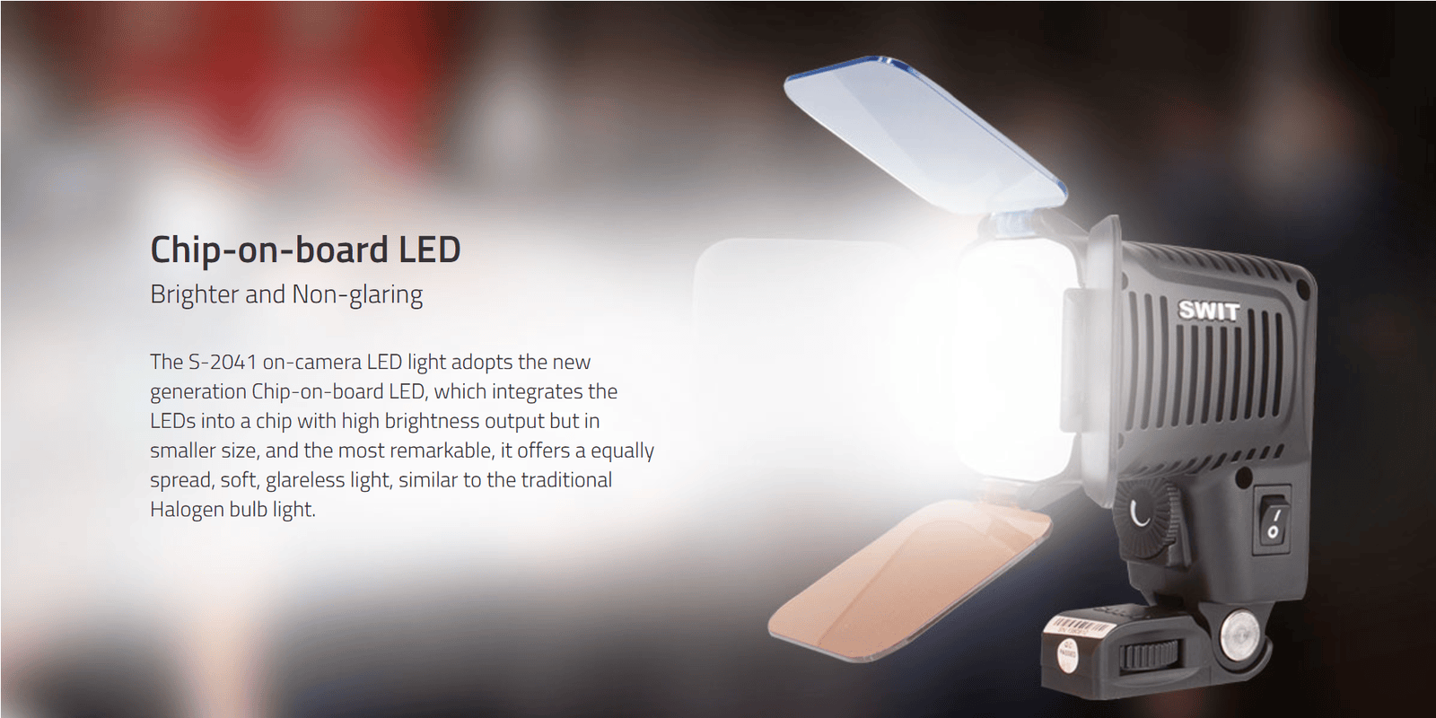 S-2041 | 23W 1800Lux COB LED On-camera Light,5000k,, with 5600K and 3200K filter, no plate
