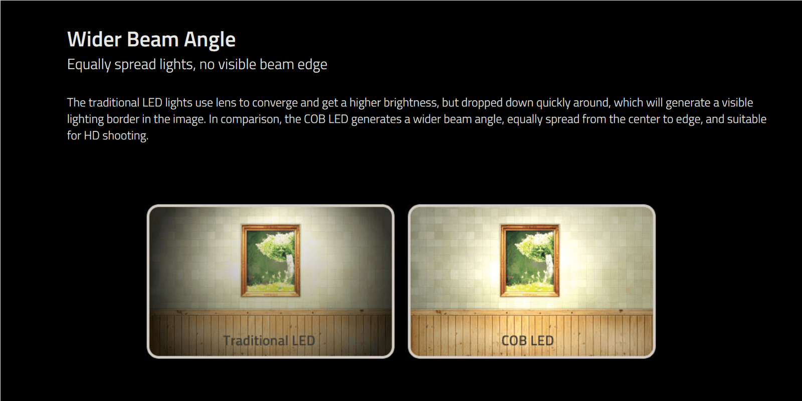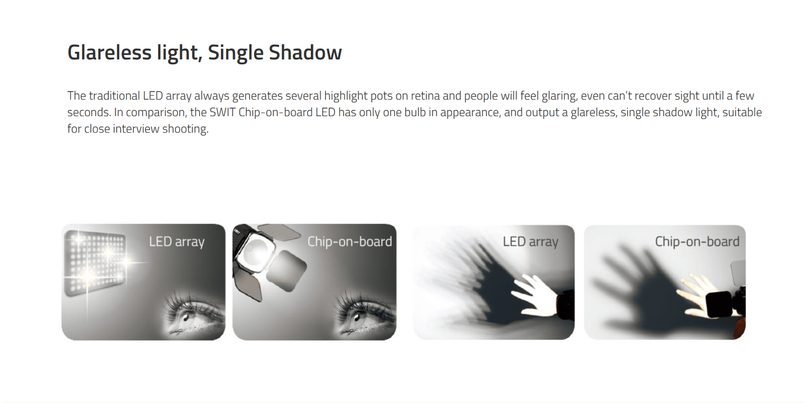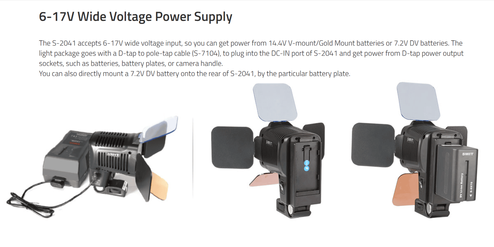 23W COB LED On-camera Light ◆1200Lux, dimmerable ◆100W equivalent output ◆Single shadow, soft, glareless ◆Cool touch, Slim and compact design ◆5000K, with 5600K and 3200K filter ◆6-17V wide input voltage ◆Power by D-tap or optional interchangeable DV mount and battery ◆glass fiber strong and durable housing ◆Screw and cold shoe mount