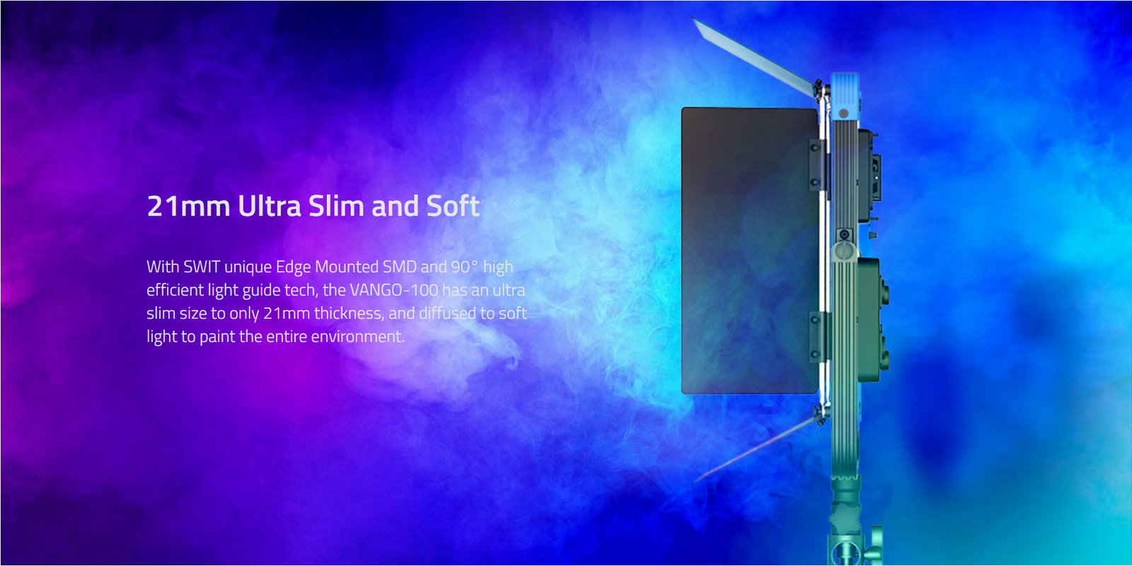 VANGO-100 | Slim and Natural-Born-Soft 2:1 professional 100W RGBW LED Panel Light, 2.1cm ultra slim, SWIT patent, V-Mount, DMX&APP