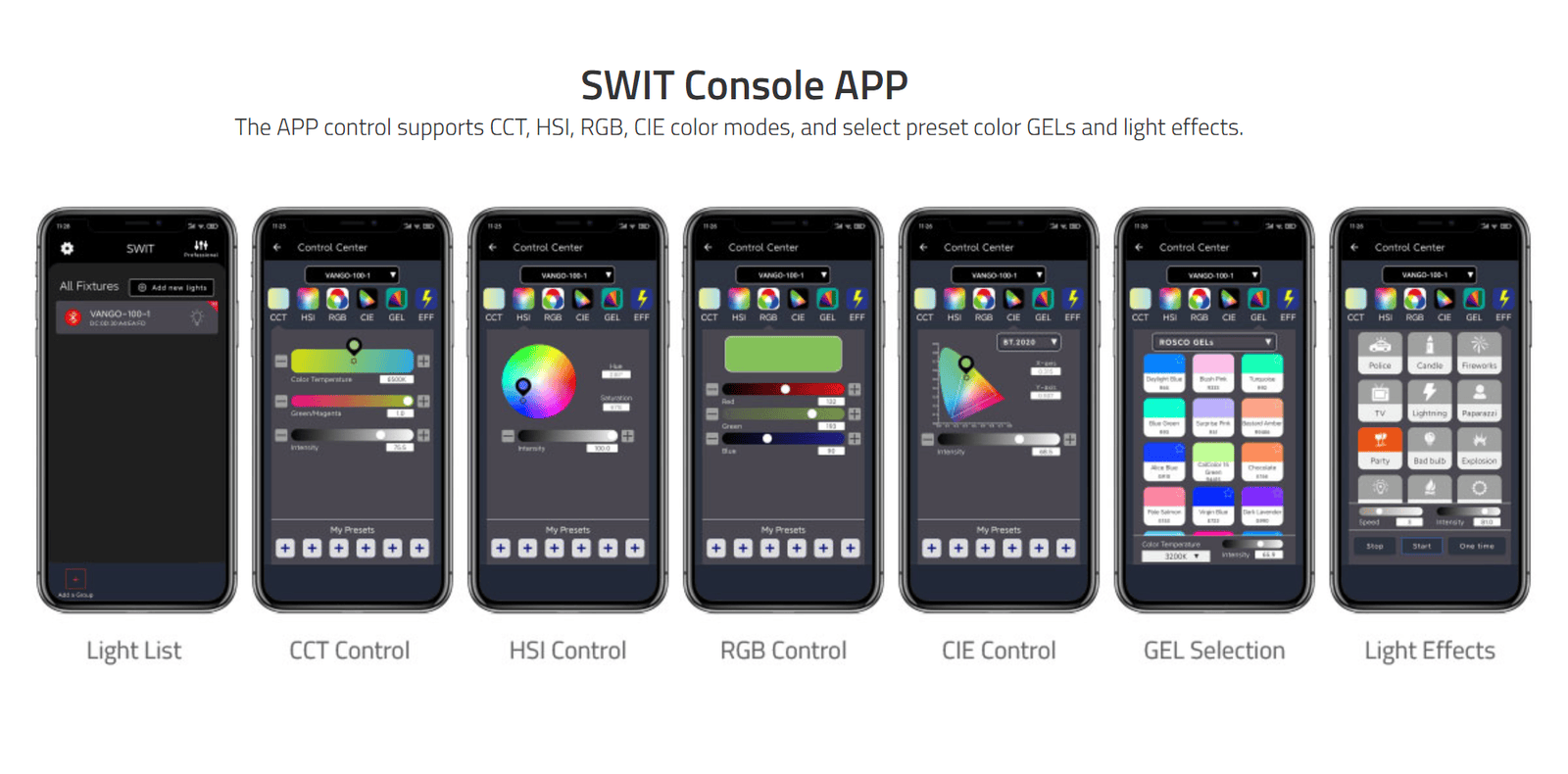 › CCT/HSI/RGB/CIE/GEL/EFF color modes