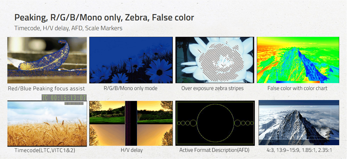 › Focus assist / False color / Zebra