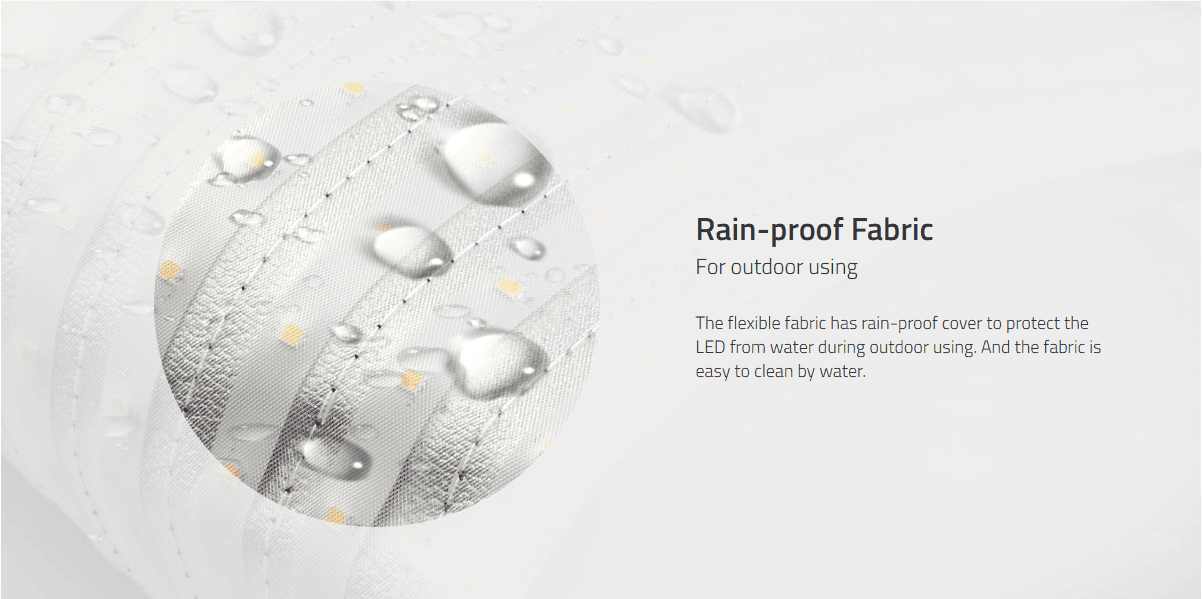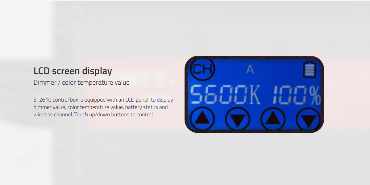 ◆100W power, 2400Lux@1m ◆Flexible 10°-360° lighting ◆Water proof fabric ◆Ultra bright SMD LEDs ◆3000K-5600K continuous adjust ◆0-100% flick-free dimming ◆CRI Ra≥97, TLCI≥97 ◆LCD Touch Screen Controller ◆2.4G wireless cascading control ◆Portable X bracket for tripod ◆DC / V-mount 11-17V input