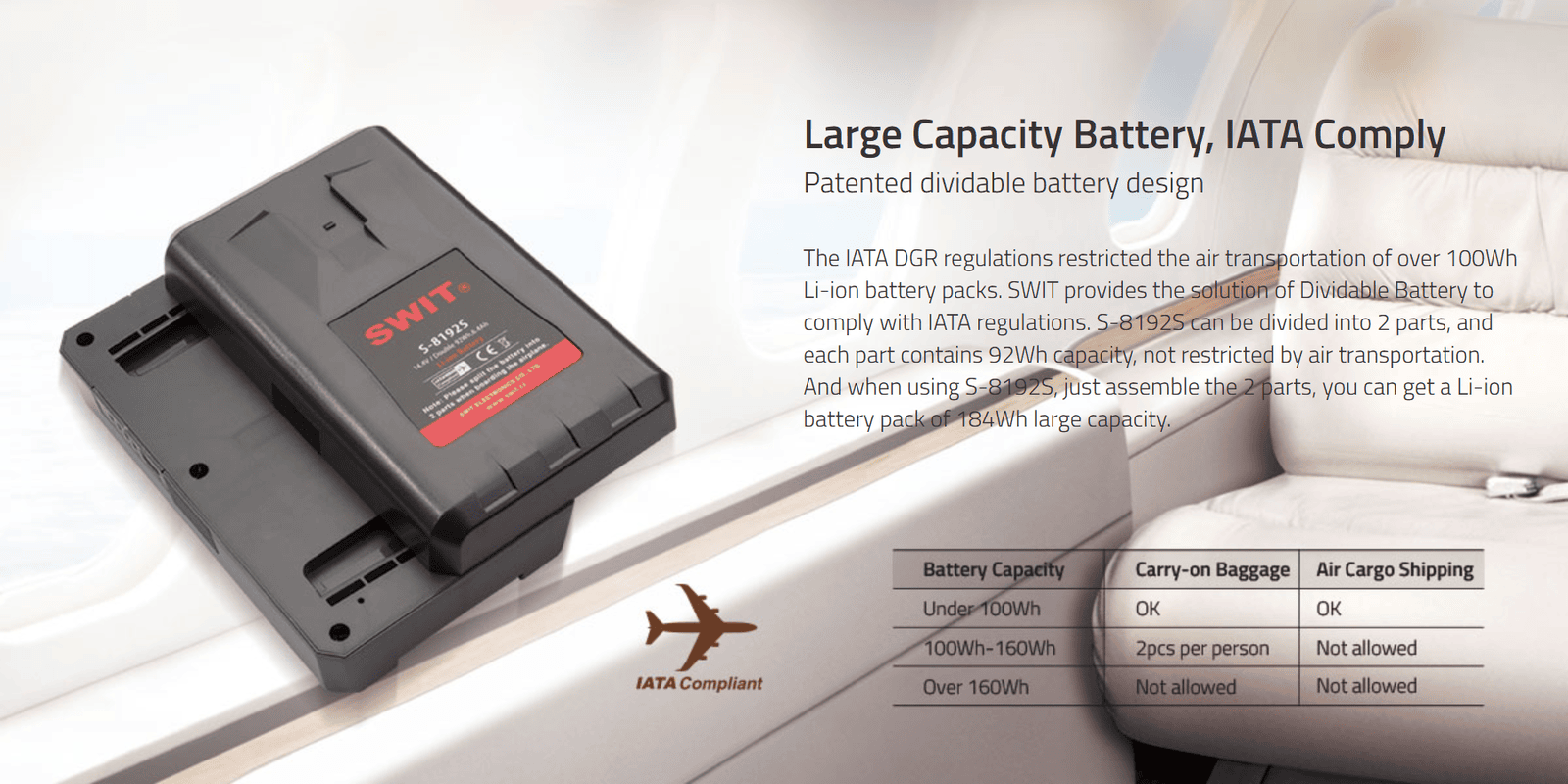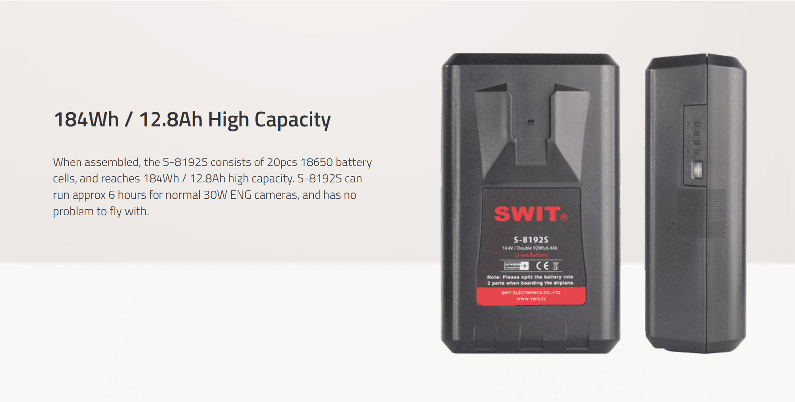S-8192S | total 184Wh Air friendly IATA-complied SWIT patented Battery, V-Mount