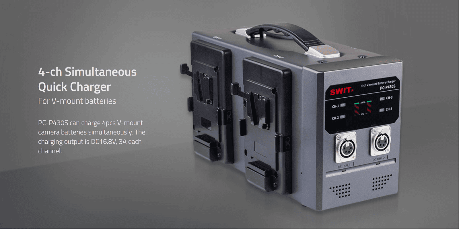 PC-P430S | 4ch x 3A Fast Simultaneous Charger with 2-XLR DC out, V-Mount