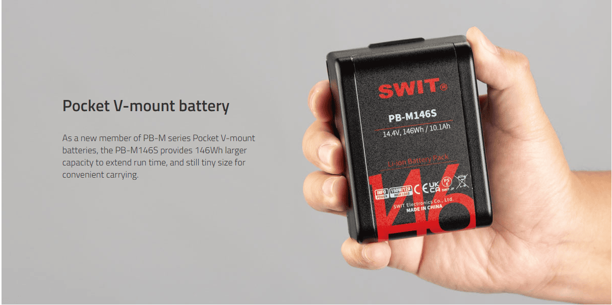 PB-M146S | 146Wh Pocket Mini High load Battery, V-Mount, also ideal for long term use or high power draw lights