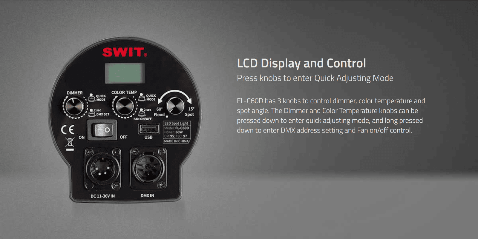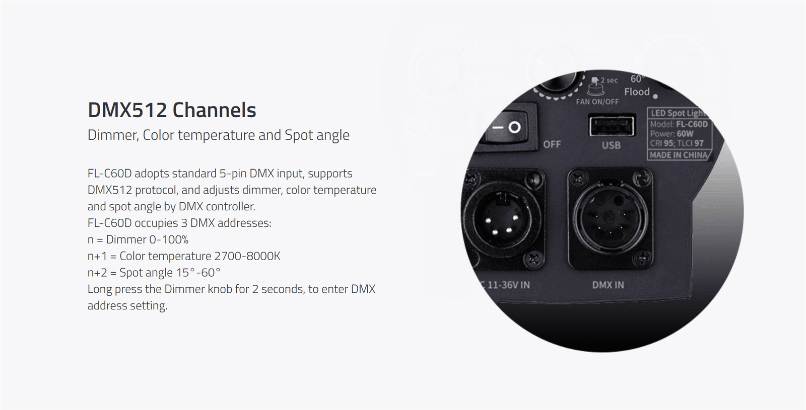 FL-C60D 3KIT | Set of 3 x 60W LED Spotlight, 25000lux, V-Mount, DMX