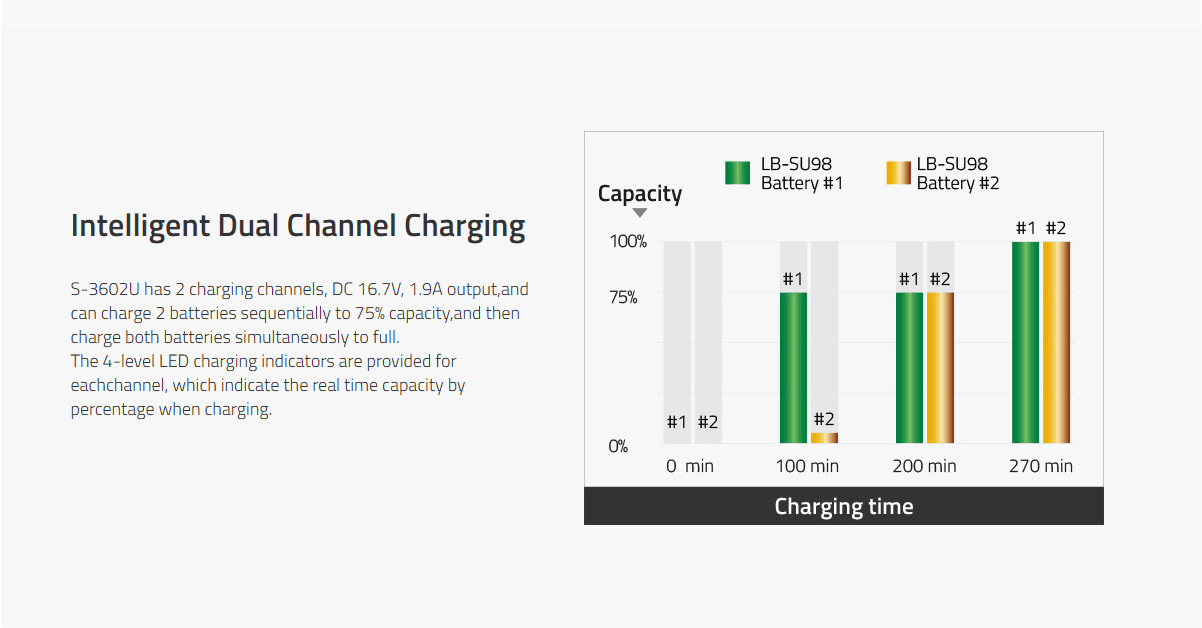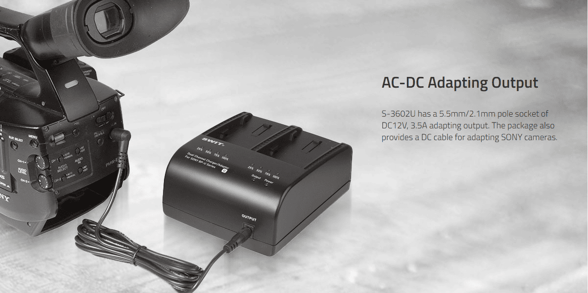 S-3602U | 2x2A DV charger compatible to Sony BP-U series