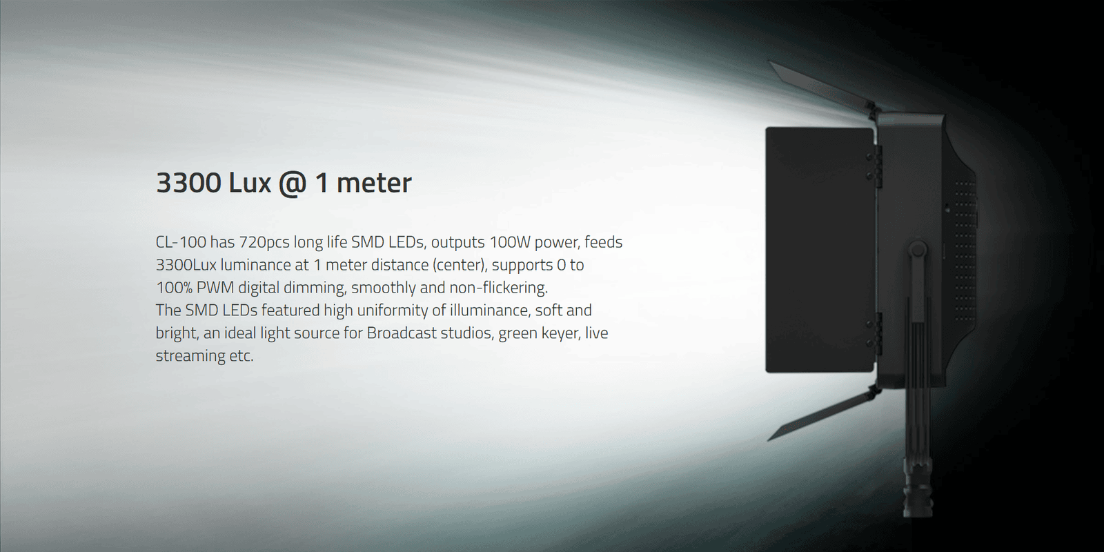 CL-100 | 100W Daylight Fanless Studio 3300lux TLCI99 LED Panel Light, SWIT Free Design for Lighting Studios