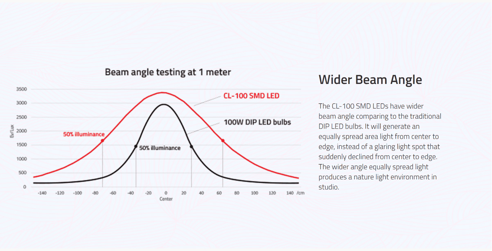 › 2:1 size, 100W, 3300Lux @ 1meter