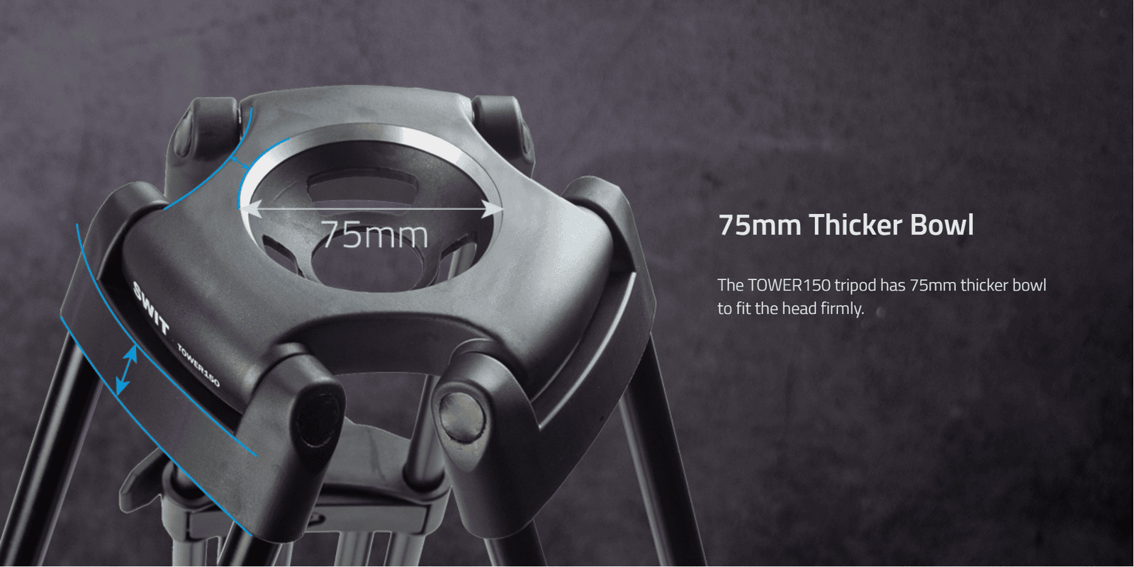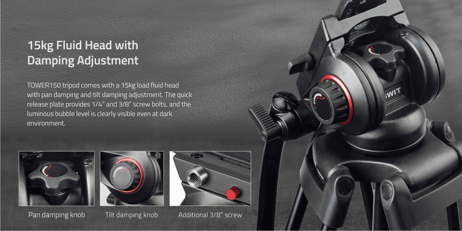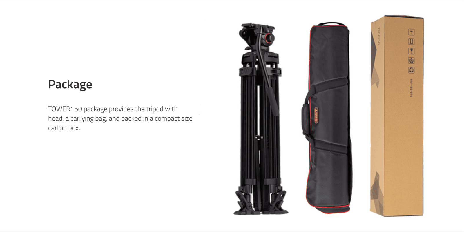 TOWER150 | Aluminum Camera Tripod KIT, with SWIT TH150 Fluid Video Head, Ground Spreader, 15kg Payload, Soft Bag