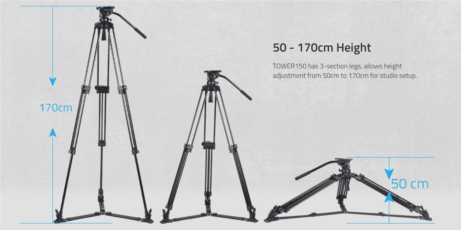 › 3-section leg, 50-170cm adjustment