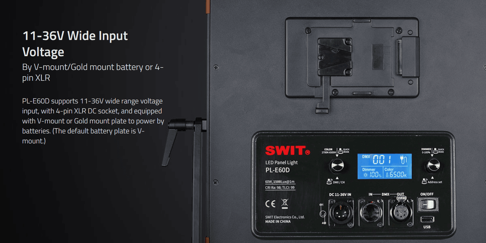 PL-E60D 3KIT | Set of 3 x 3rd Generation Natural-Born-Soft TLCI-99 60W LED Panel Light, ultra slim, SWIT patent, V-Mount, DMX