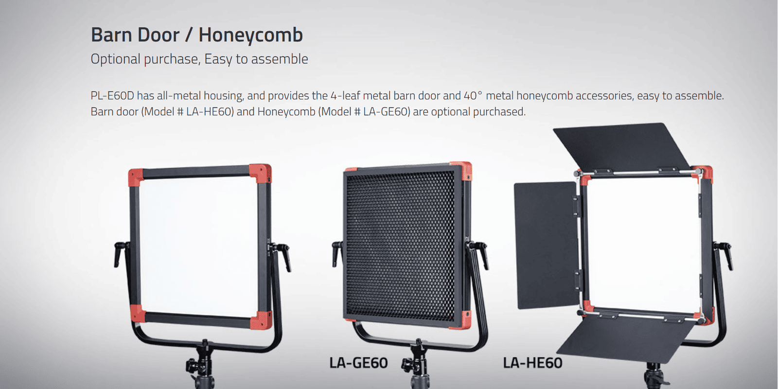›  Optional 4-leaf barn door and 40° honeycomb