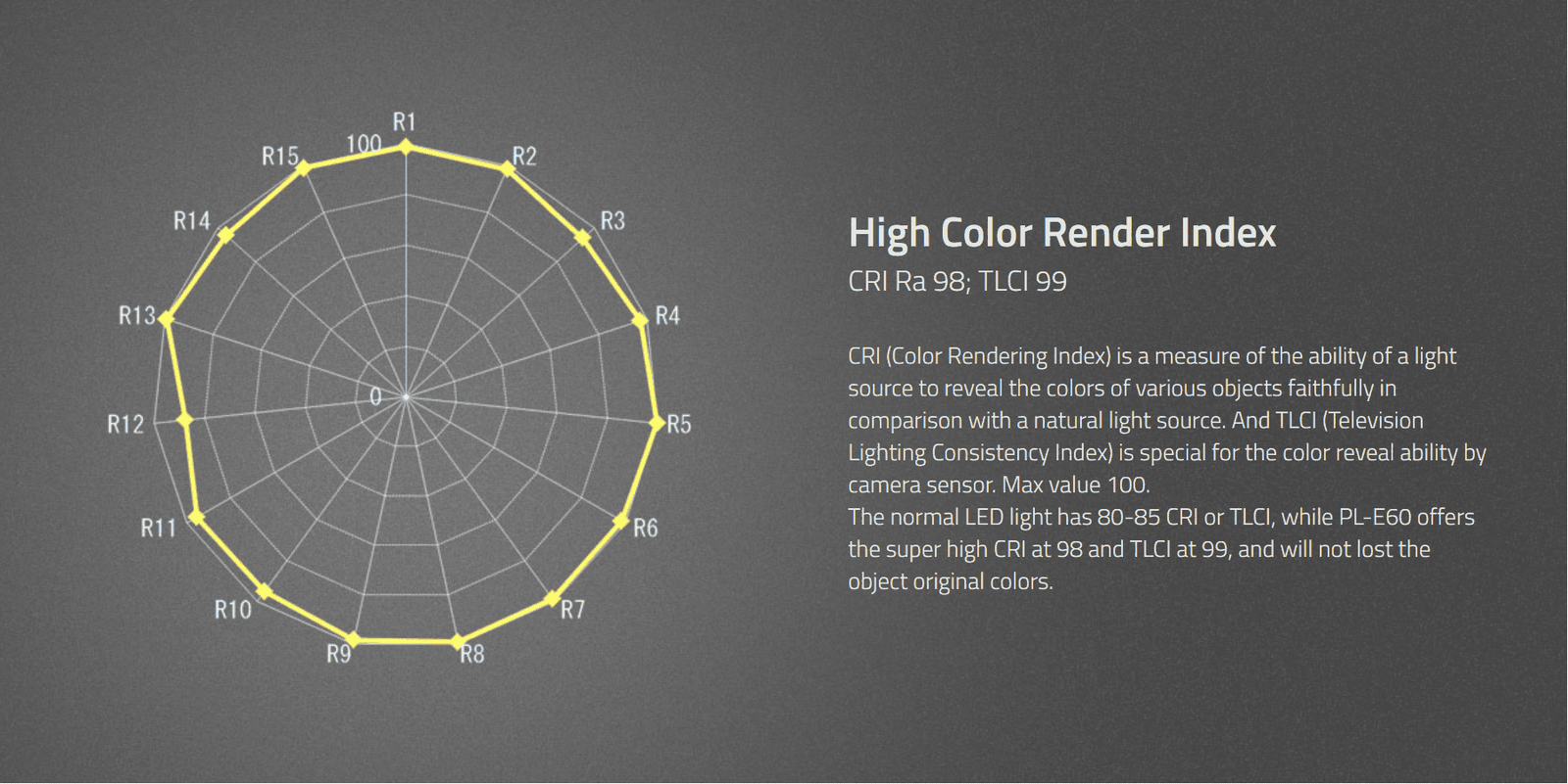 ›  Super high CRI Ra 98, TLCI 99