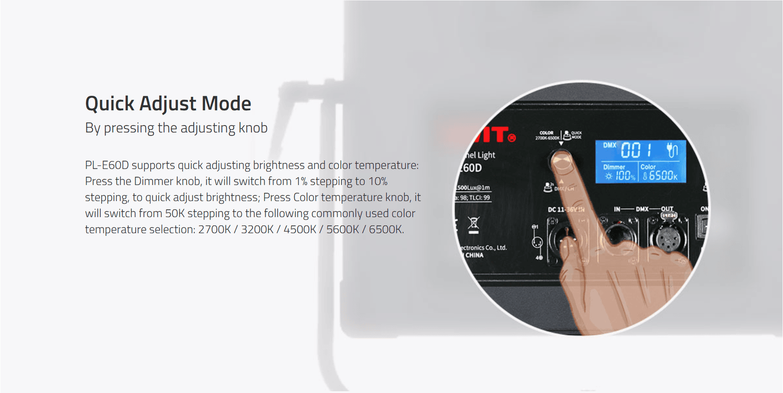 ›  2700K-6500K continuously adjustable