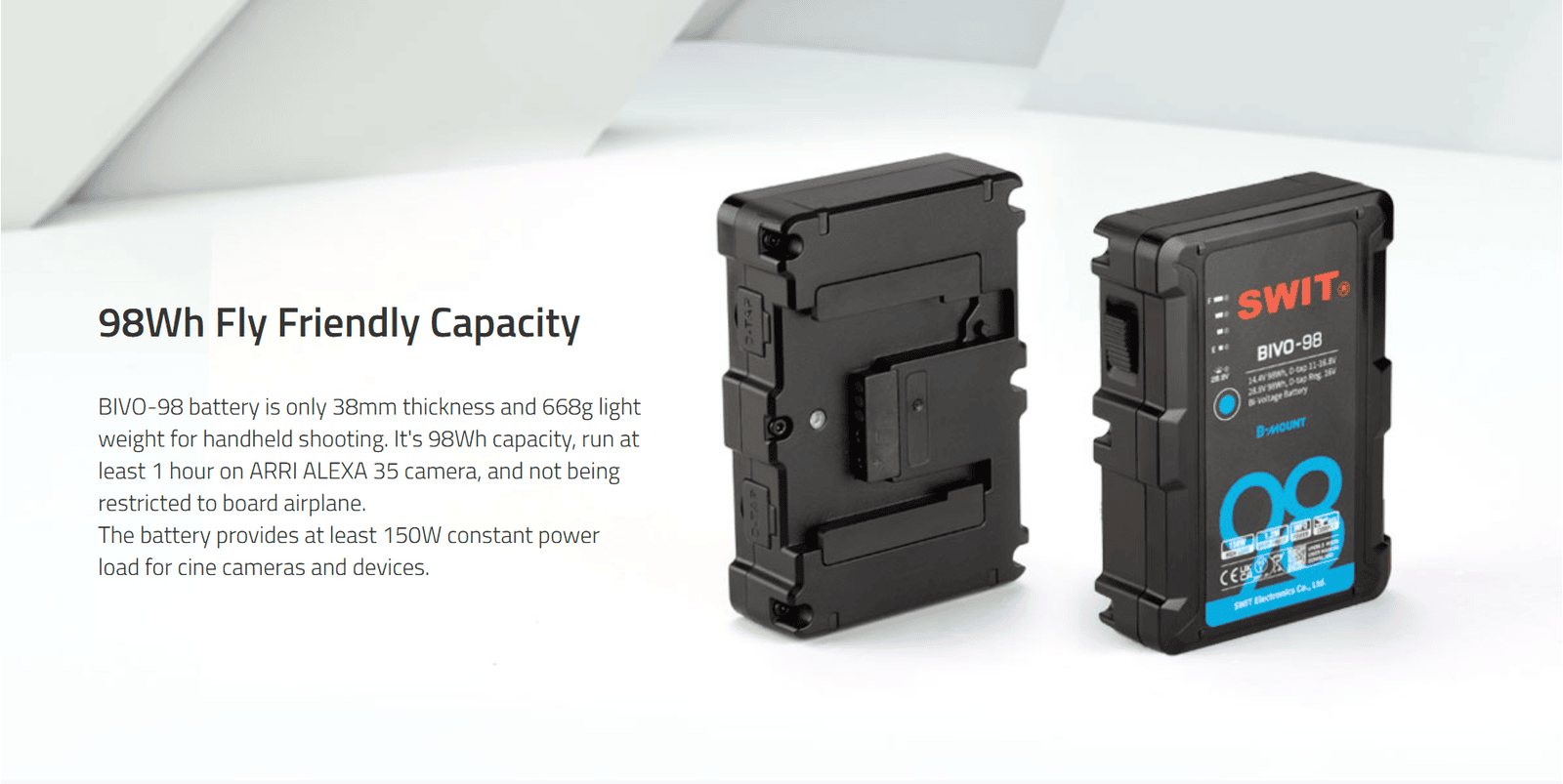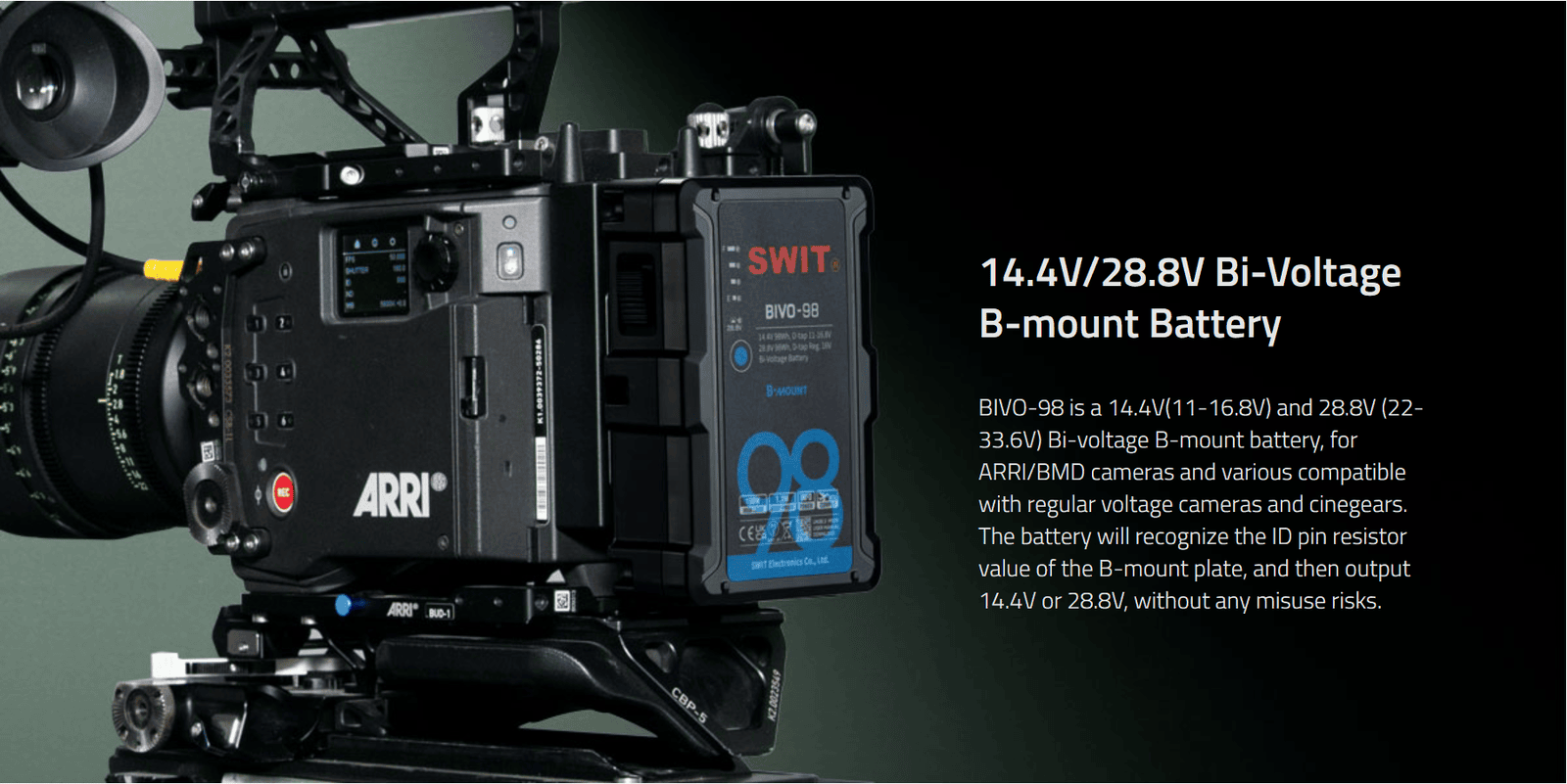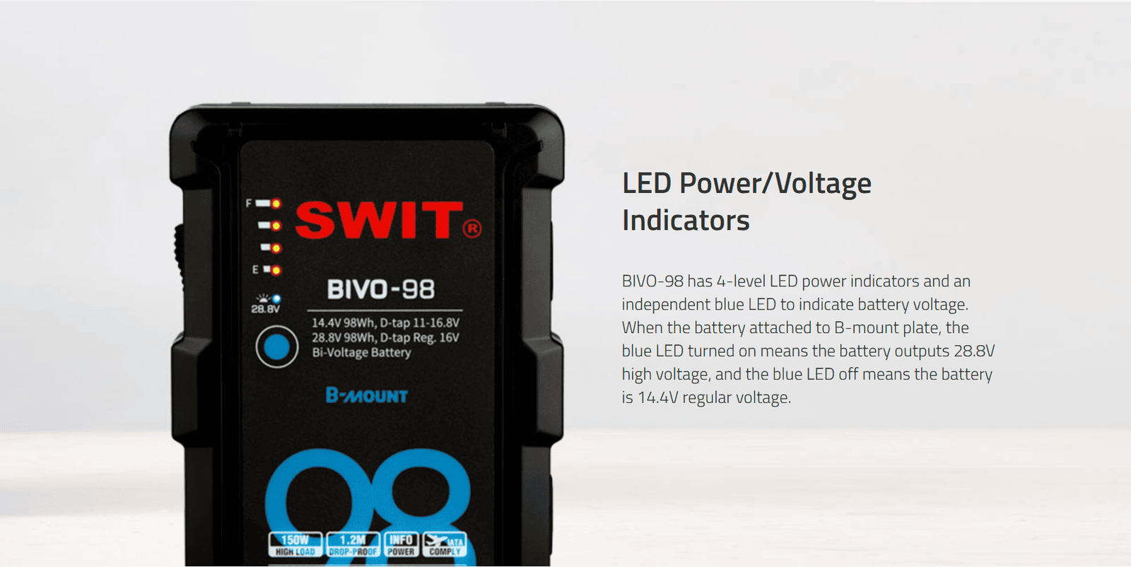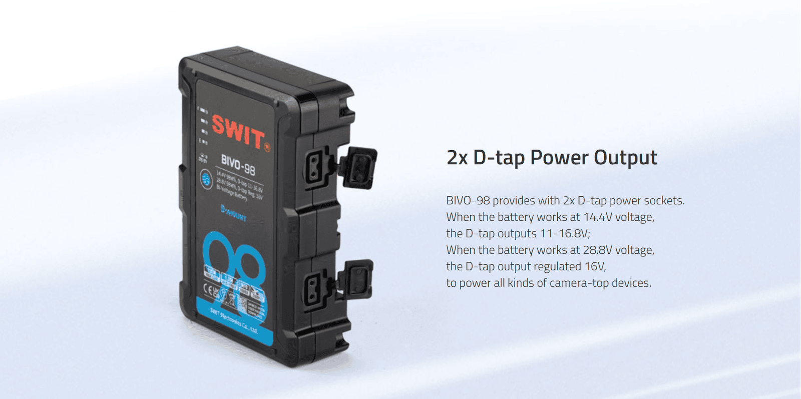 BIVO-98 | 98Wh 14V/28V 150W High Load B-Mount Battery with powerful 2xD-taps