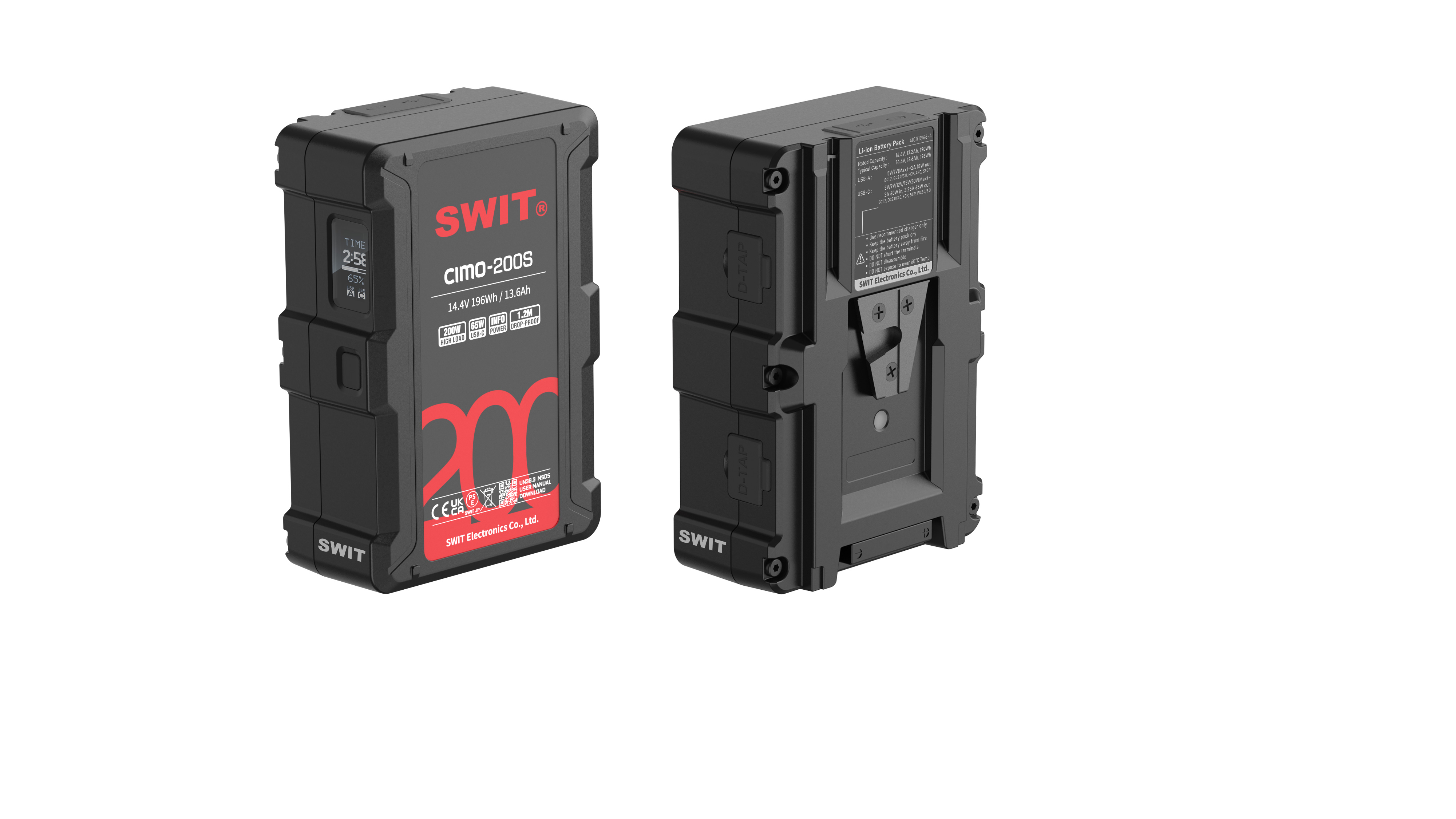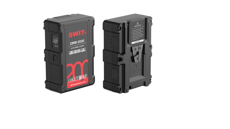 CIMO-200S | 200Wh 200W High Load V-Mount Battery with USB-C, OLED and powerful 2xD-taps, also ideal for long term use or high power draw lights