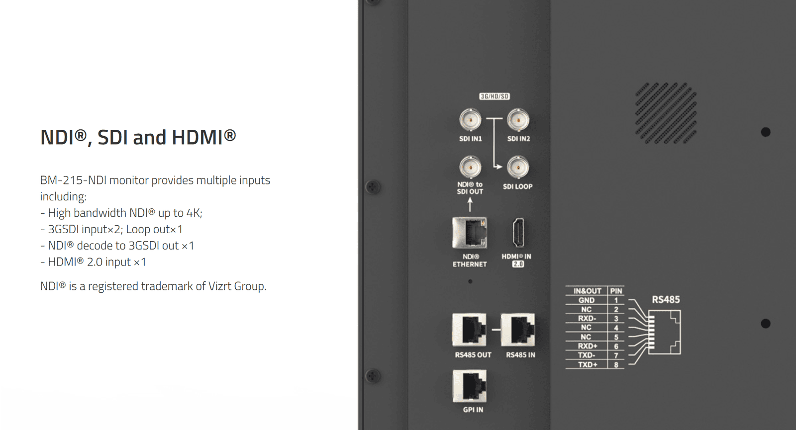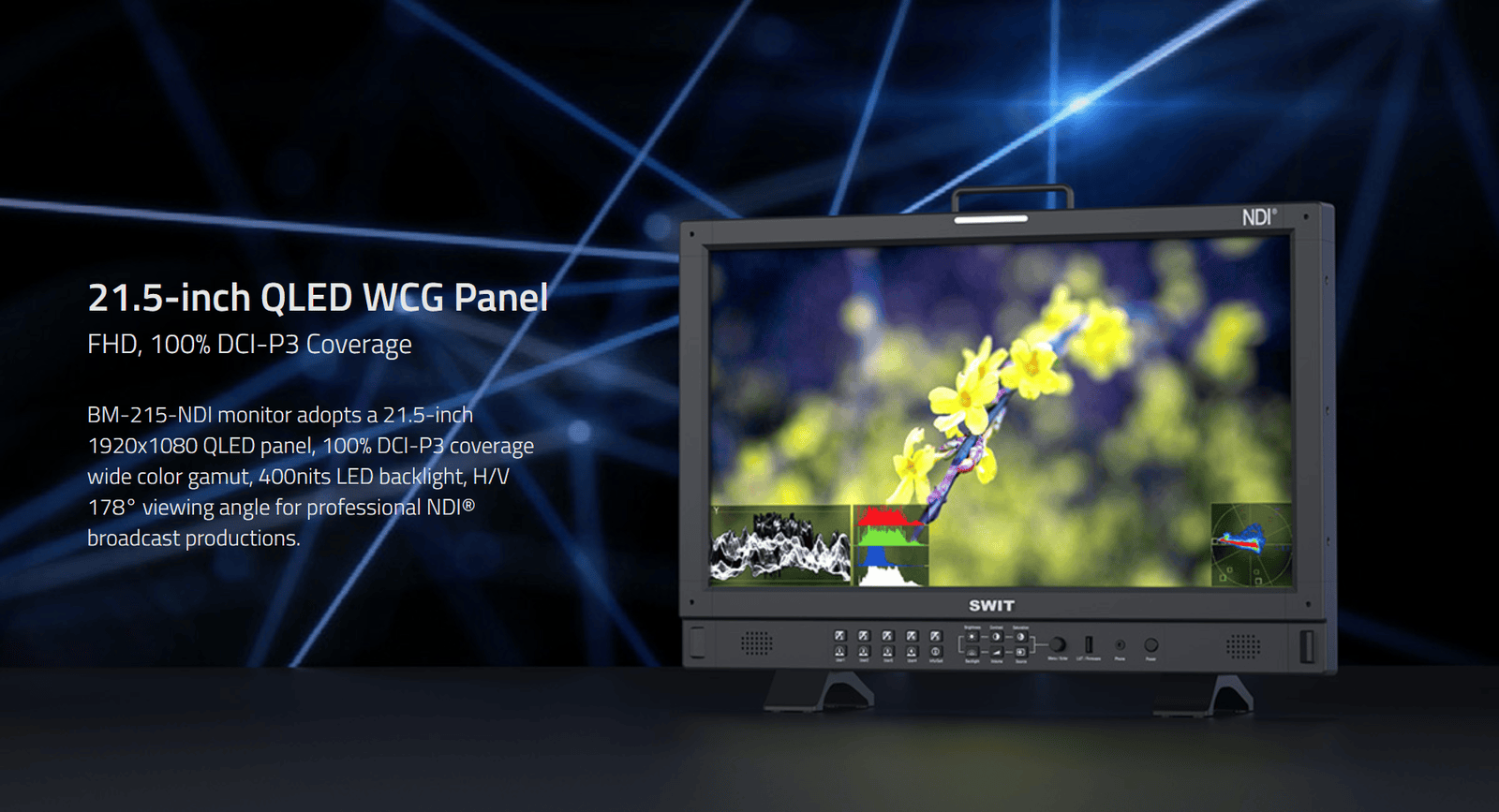 BM-215-NDI | 21.5" 4K-NDI QLED HDR 100%DCI-P3 Zero-Delay professional FHD Monitor with Auto-Calibration