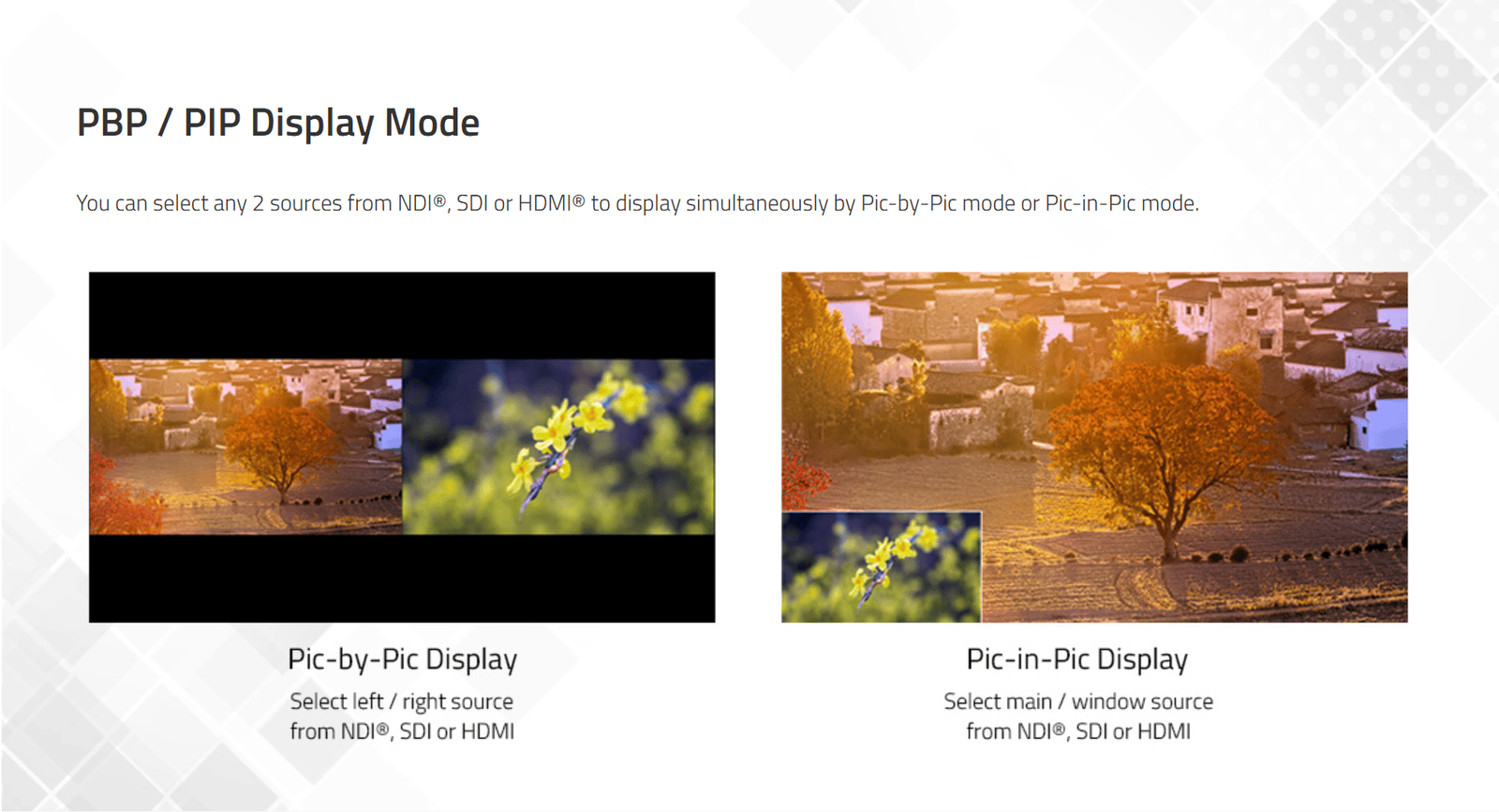 21.5" 4K-NDI QLED HDR Zero-Delay FHD Monitor, 100ÜI-P3 color gamut; 18-bit Processing; Support all 4K interfaces and HDR standards; support 4x3G SDI, HDMI 4K; Independent mixed Quad-View with muliti Color-Gamut/EOTF; Picture in/by Picture; Audio Patterns; Eye pattern; 450nits; Auto Calibration by time and cost efficiency; with all professional functions